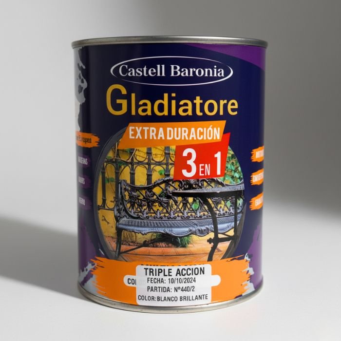 Esmalte sintético de triple acción que combina convertidor de óxido, anticorrosivo y terminación de alto brillo en un solo producto, ideal para protección y acabado profesional.